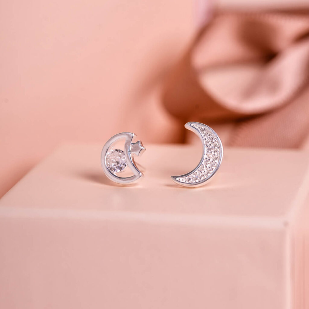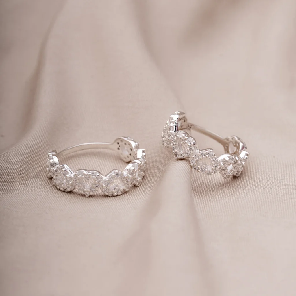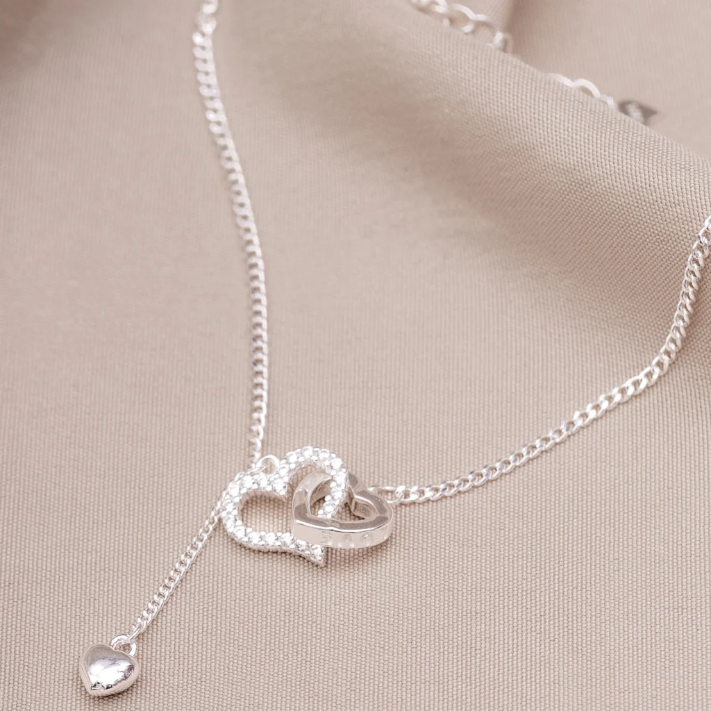 Brinco Brinco duplo coração e Zircônia Pendente na Corrente