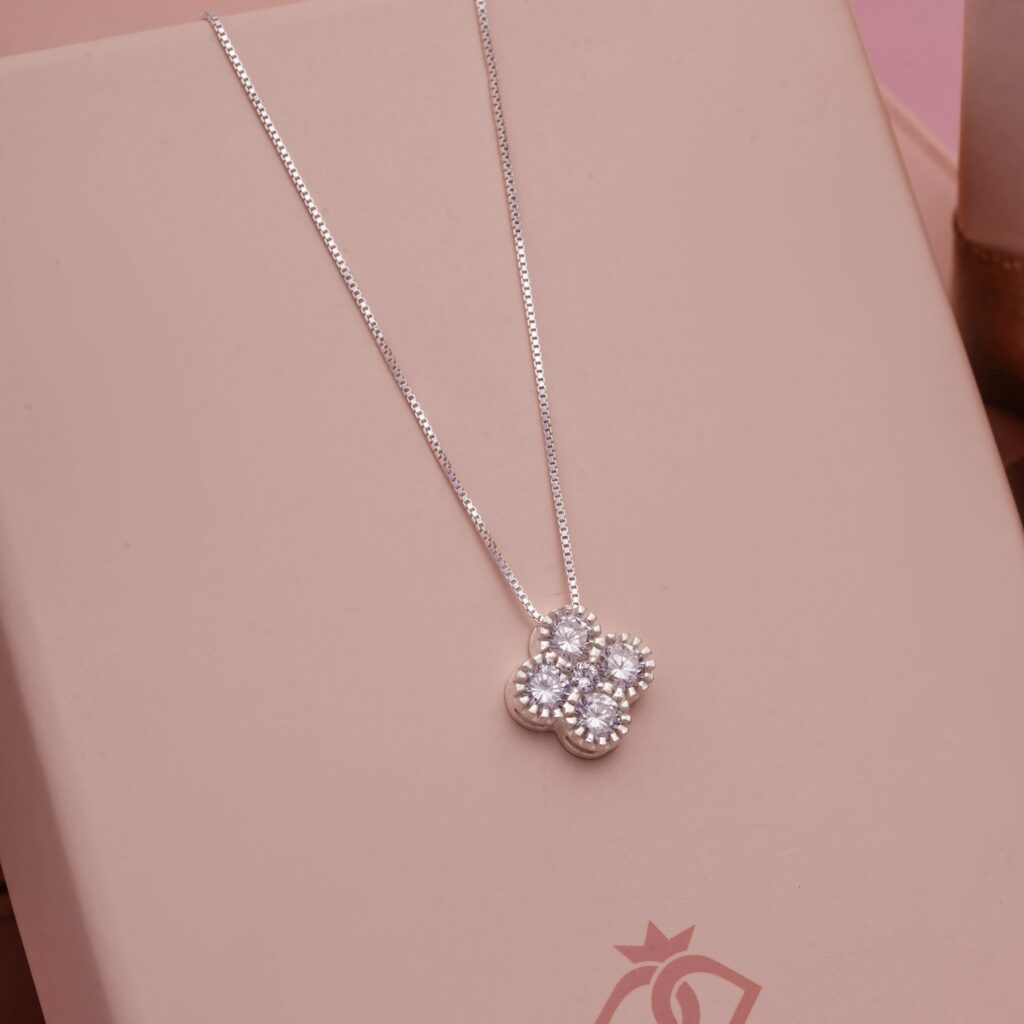 Colar Trevo 4 Zircônias Cristal