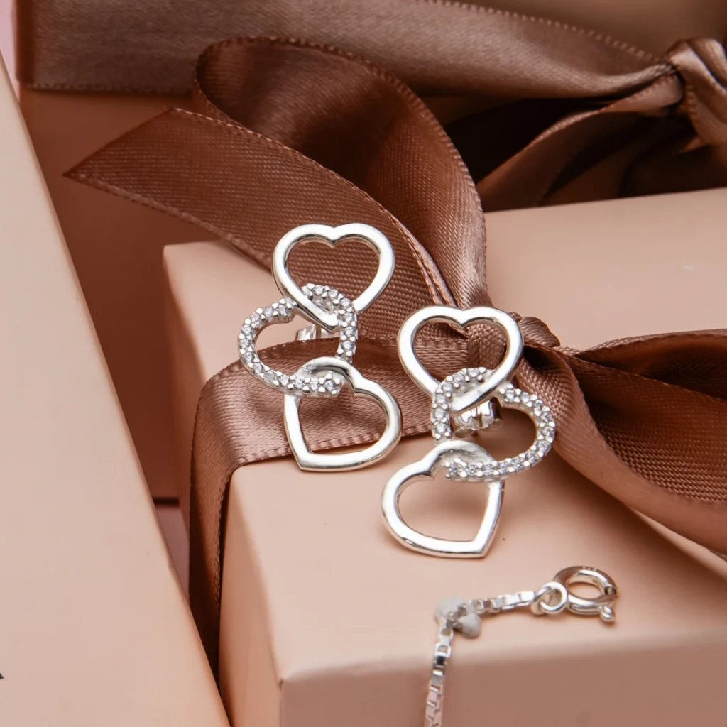 Brinco Coração Vazado Triplo Cravejado