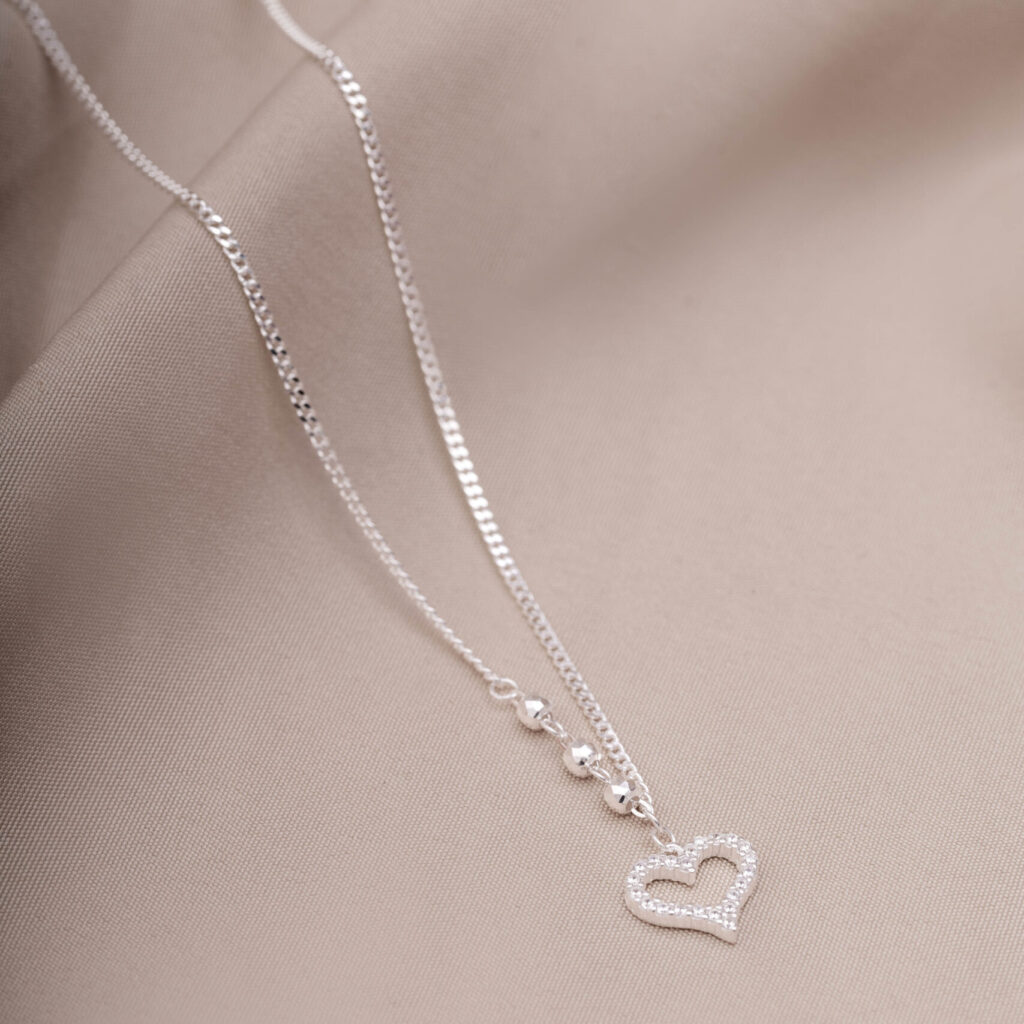 BRINCO DUPLO CORAÇÃO E ZIRCÔNIA PENDENTE NA CORRENTE