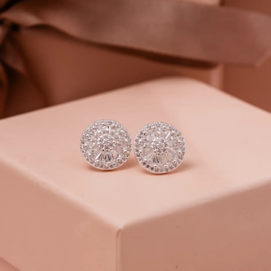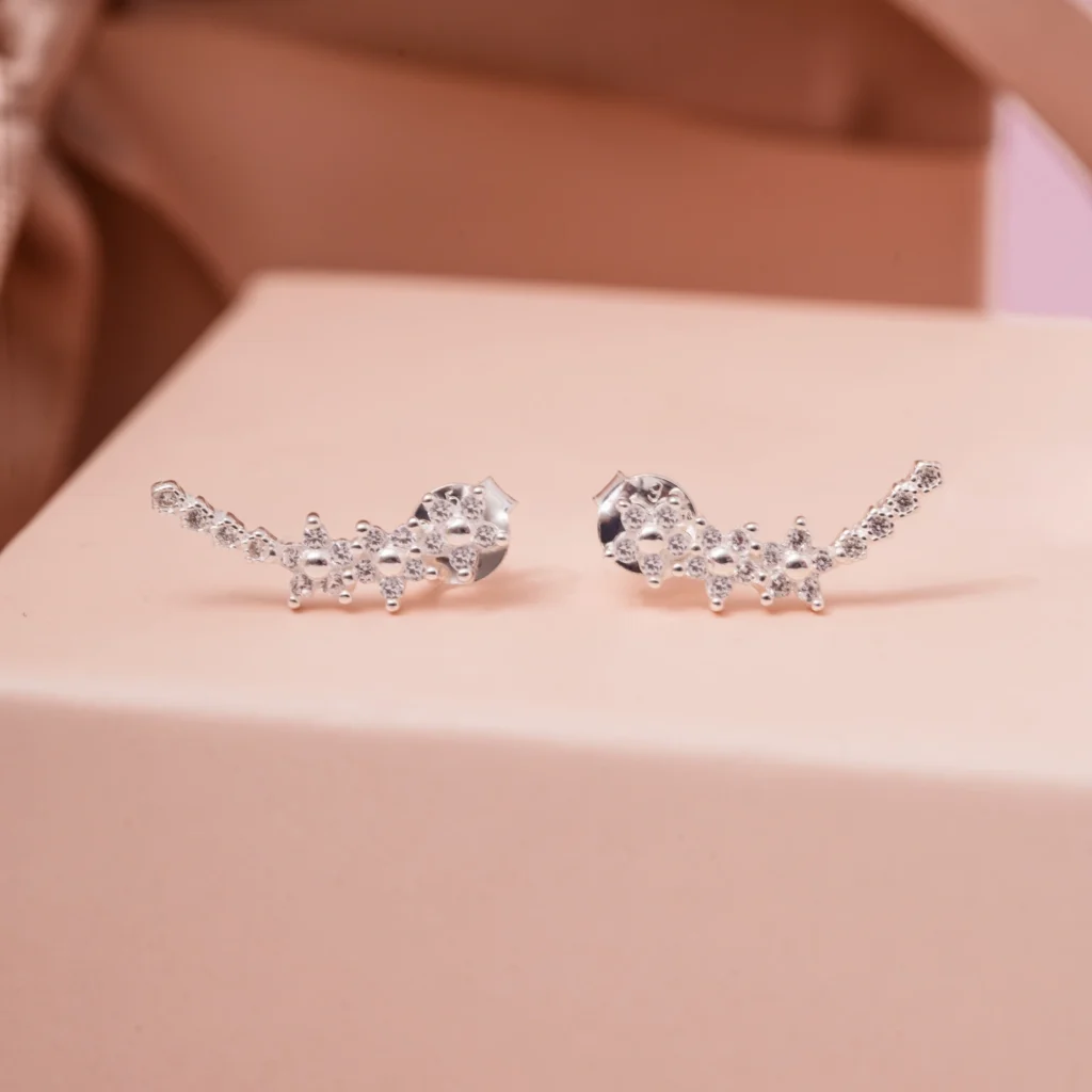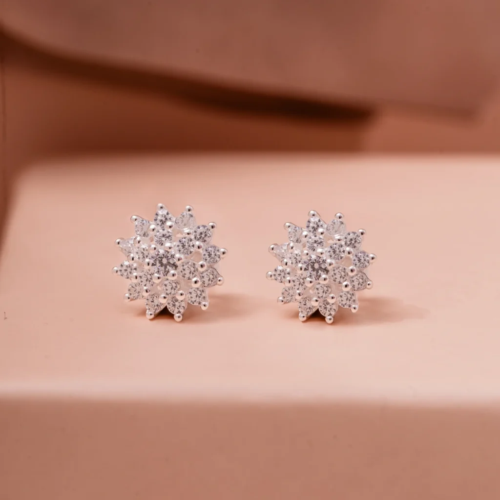 Brinco Flor Fechada Cravejada