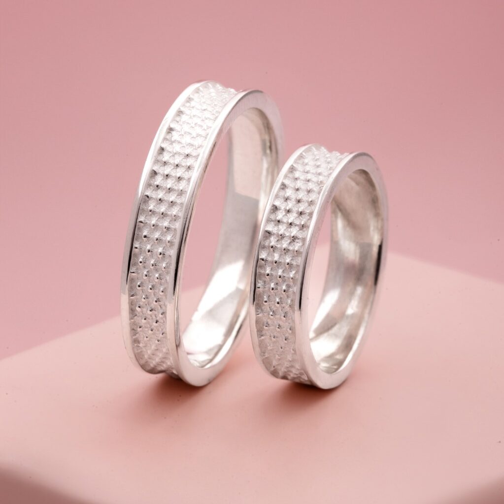 Aliança texturizada em prata 5mm, com interior anatômico que garante conforto absoluto. O acabamento marcante representa a beleza única de um amor vivido com intensidade e leveza. Uma joia feita para acompanhar e emocionar todos os dias.