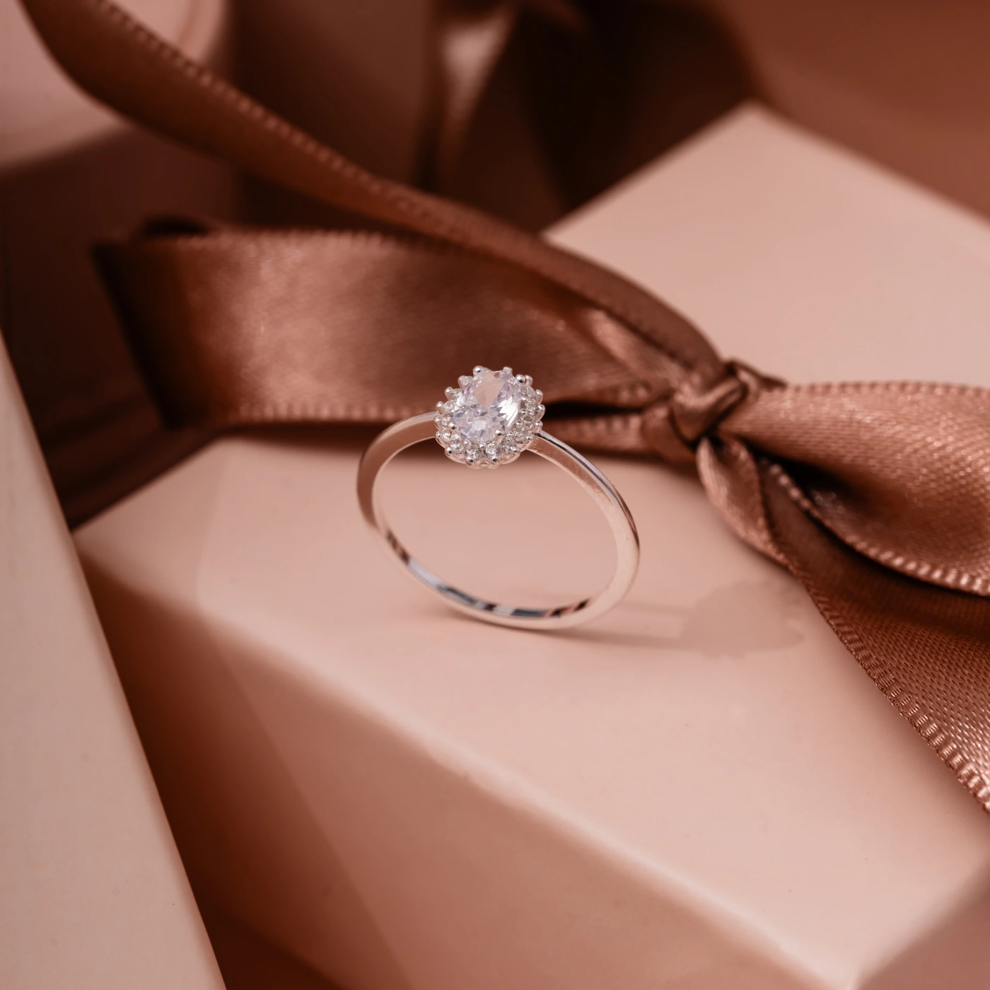 Anel Conjunto Oval 3 Garras Zircônia Cristal