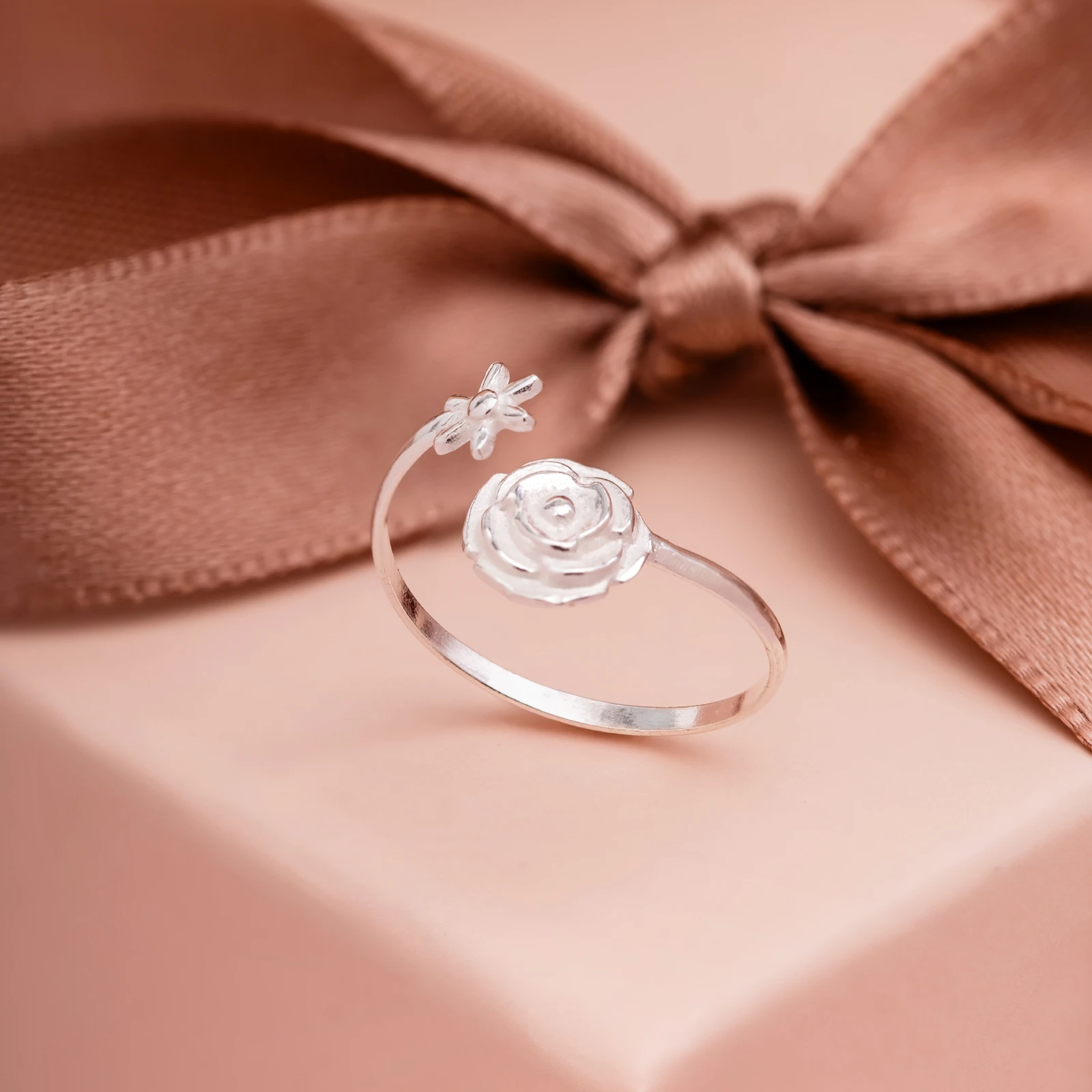 ANEL FALANGE ROSA TEXTURIZADA E FLOR