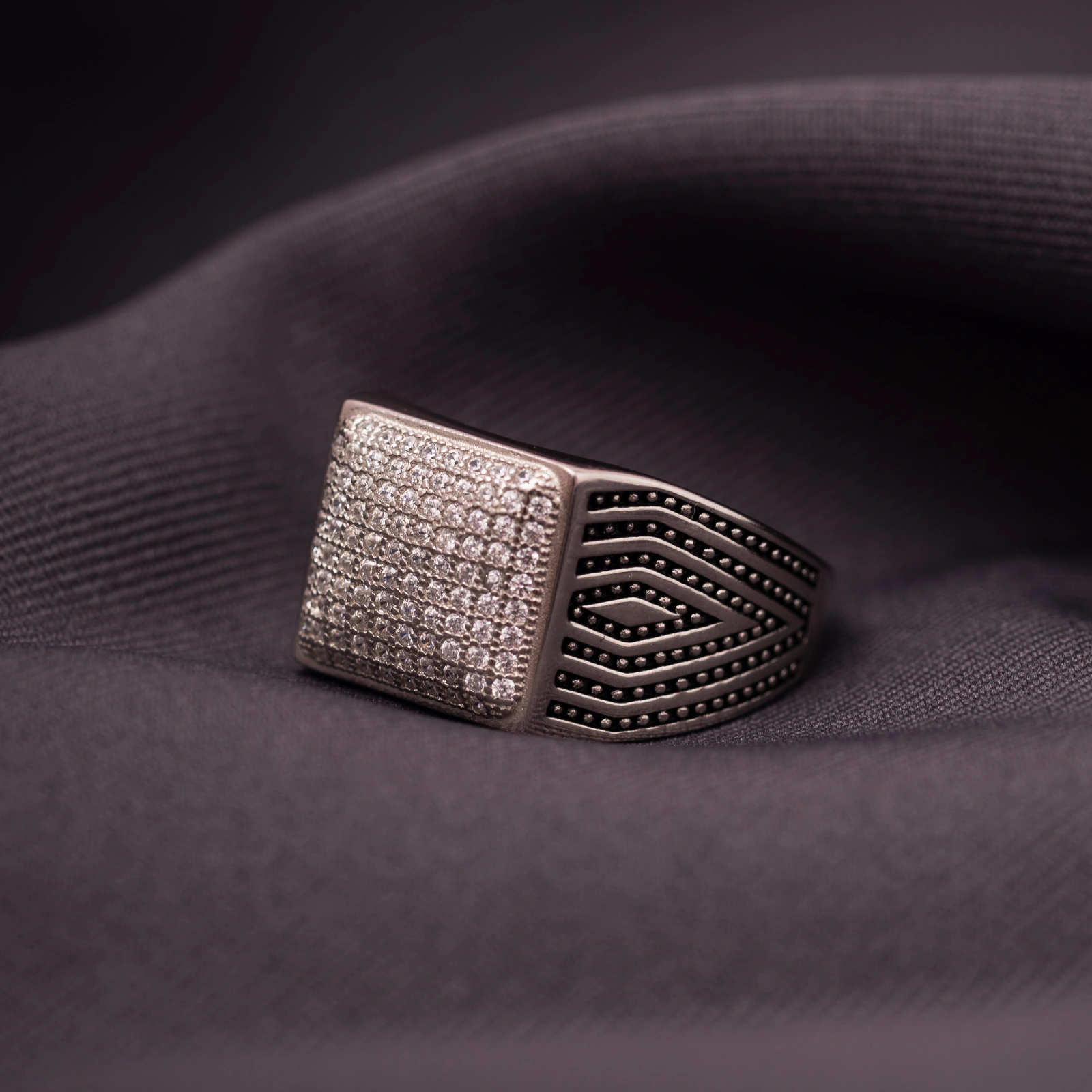 Anel Masculino Lateral Losango Cravejado