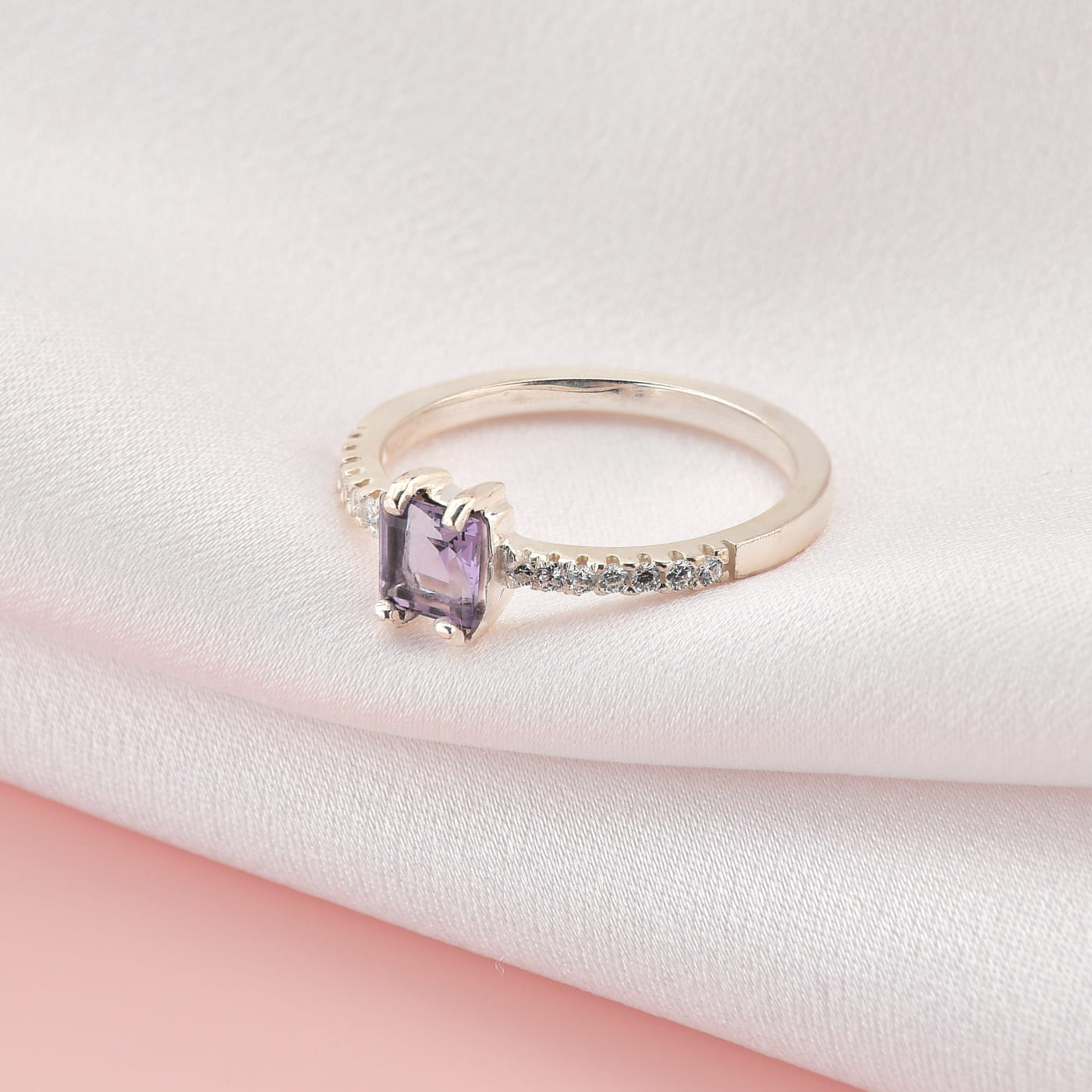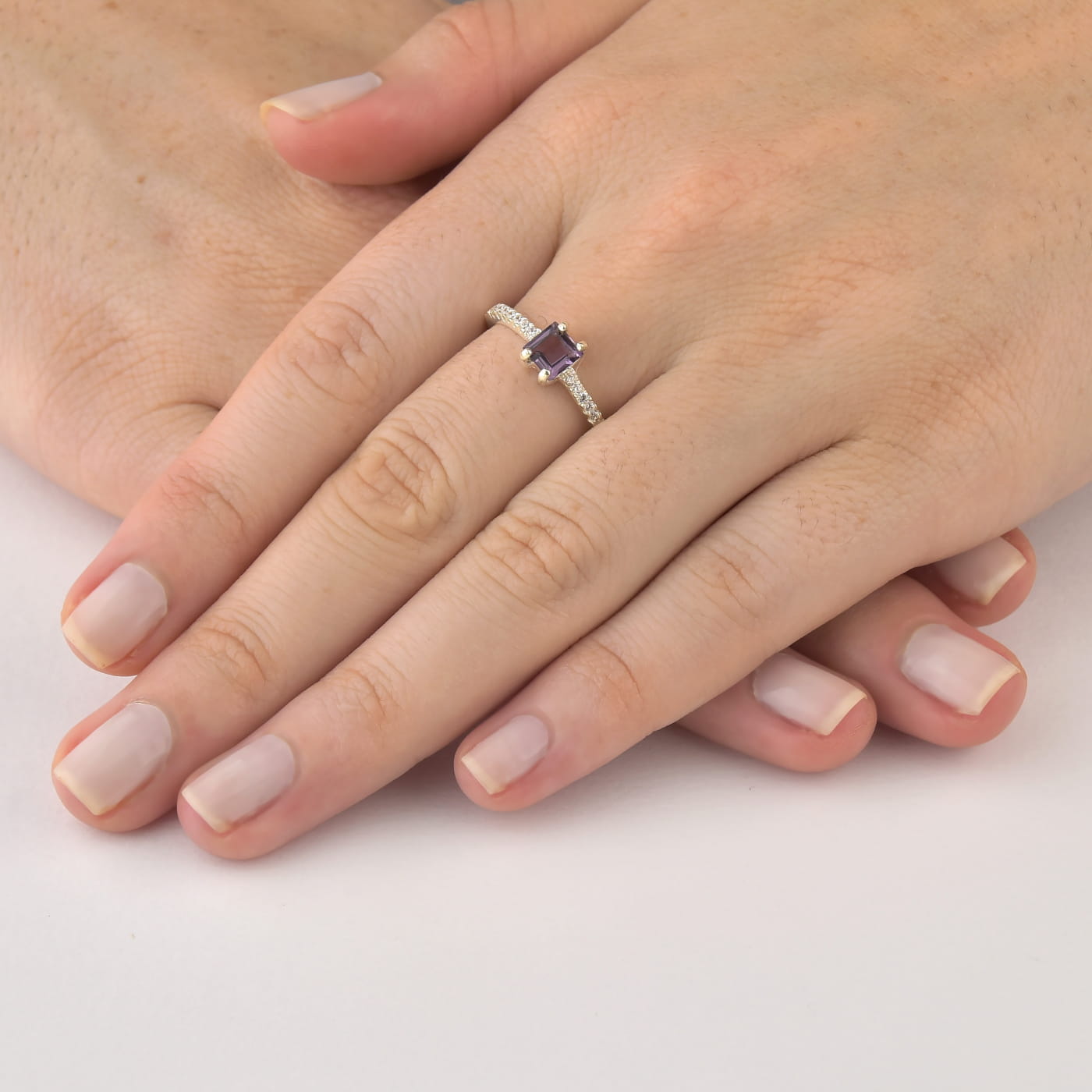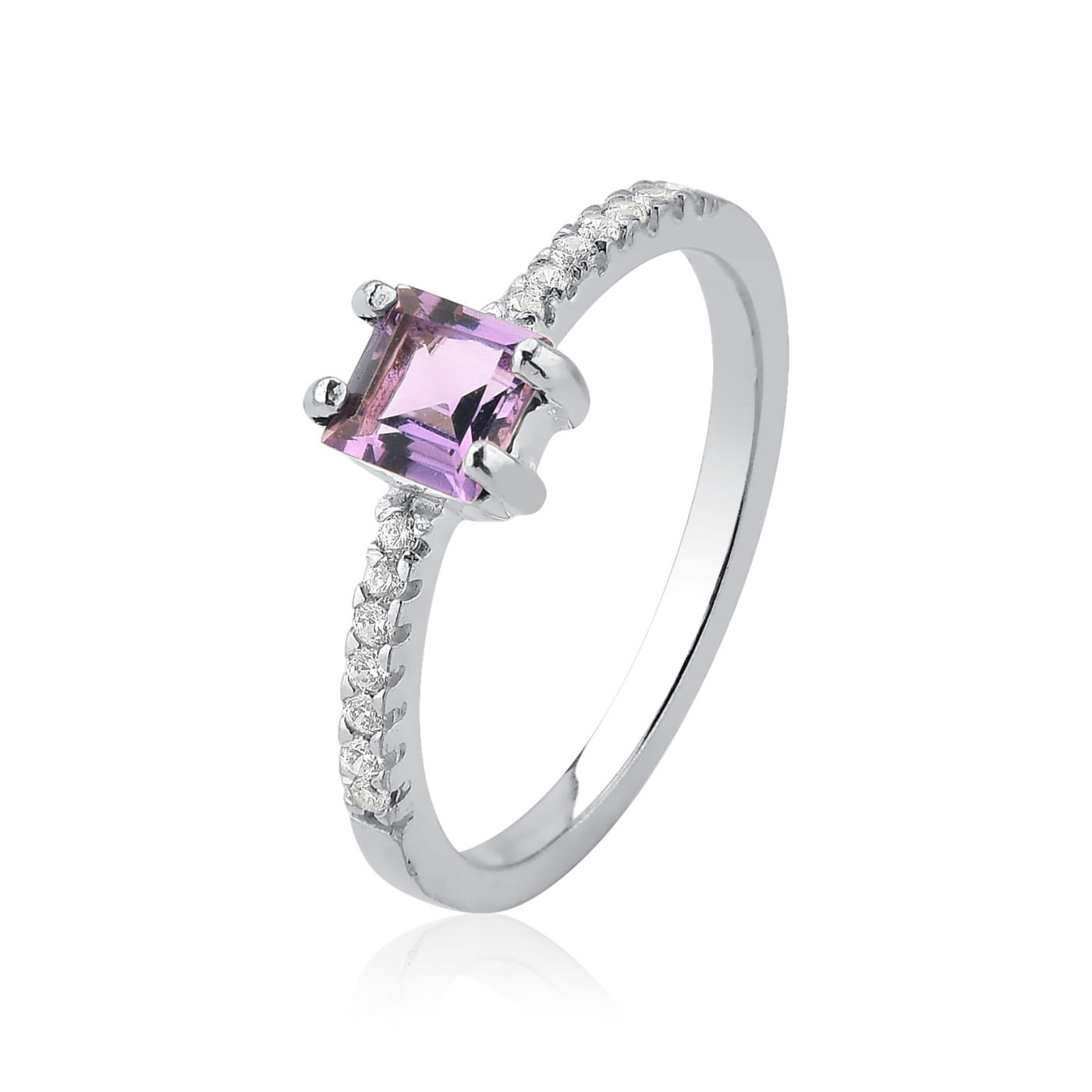 Anel Solitario Carrê 14 Cristais Cravejados Ametista