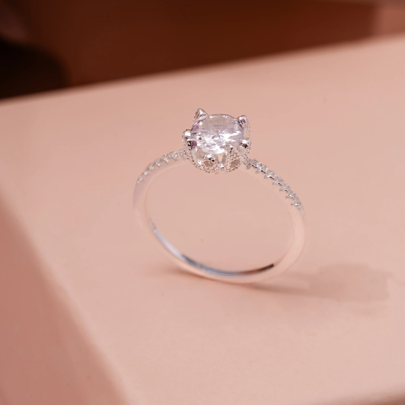 Anel Solitário Flor Cravejada em Prata, uma joia delicada que une romantismo e sofisticação. A flor central cravejada com zircônias reflete brilho suave e elegante, valorizando o design com leveza e feminilidade. Uma peça encantadora, perfeita para iluminar as mãos e adicionar um toque delicado e refinado ao visual.