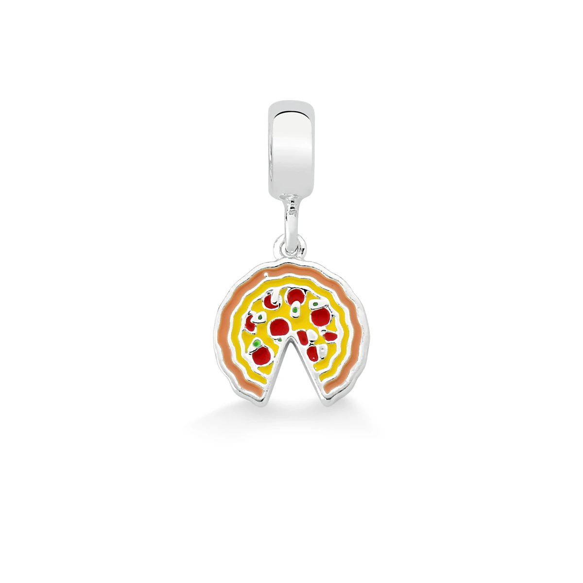Berloque Pizza em Prata, uma joia criativa que celebra momentos de descontração e alegria. O design em formato de pizza traduz personalidade e bom humor, tornando a peça um detalhe único na pulseira. Um acessório cheio de charme, perfeito para compor o mix com diversão e estilo autêntico.