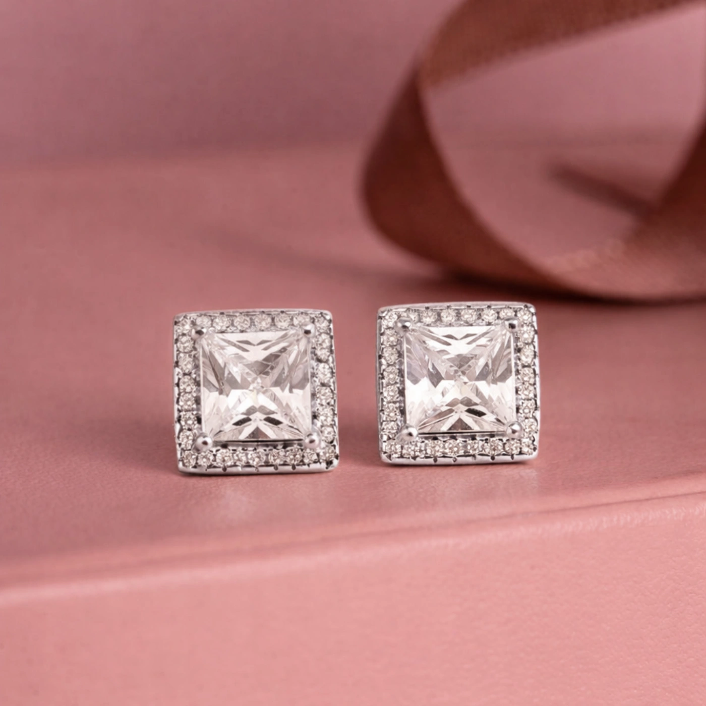 Brinco Princesa com pedra central quadrada em tamanho médio, combinando brilho sofisticado com equilíbrio na medida certa. Contornado por zircônias, oferece elegância com delicadeza. Ideal para eventos ou para dar um toque refinado ao visual do dia a dia.