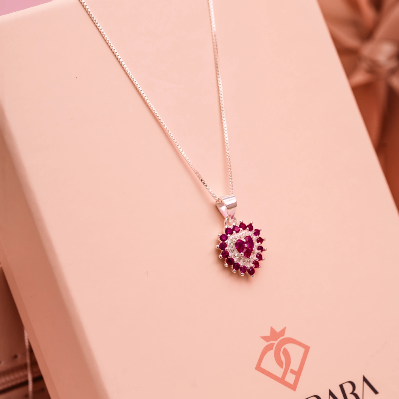 Colar Coração Cravejado Vermelho Rubi, uma joia marcante que une romantismo e brilho vibrante. O coração cravejado em tom rubi reflete intensidade e paixão, enquanto as zircônias realçam a cor com luminosidade sofisticada. Uma peça charmosa e elegante, perfeita para destacar o colo com personalidade e adicionar um toque de cor ao visual