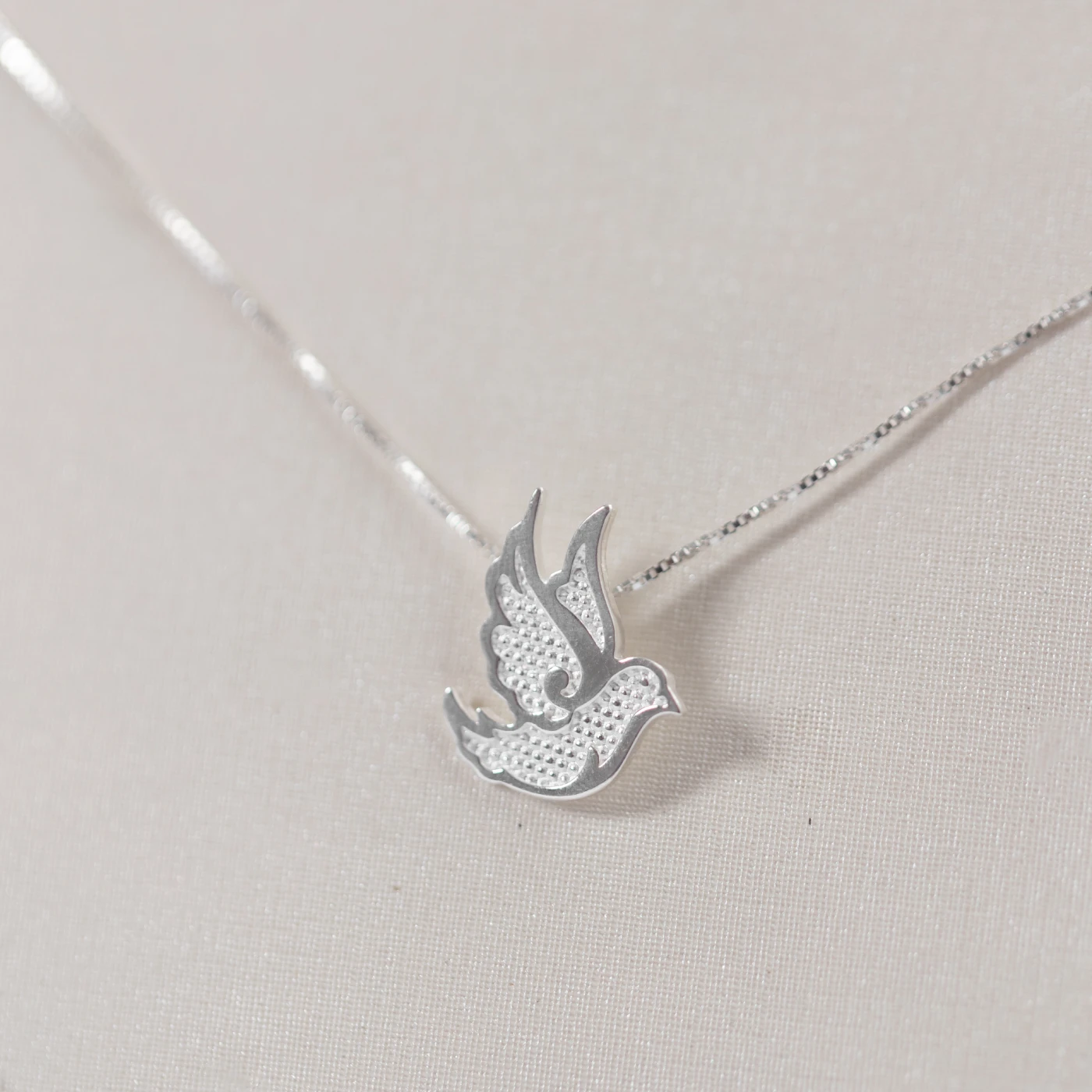 Colar Espírito Santo com Textura em Prata, uma joia que reflete fé e proteção com elegância. O pingente texturizado destaca a figura do Espírito Santo com detalhes delicados, trazendo leveza e significado ao design. Uma peça especial, perfeita para iluminar o colo com sutileza e carregar consigo um símbolo de espiritualidade e boas energias.