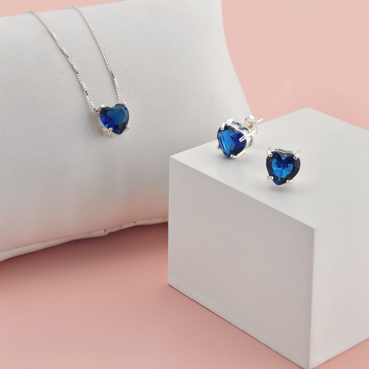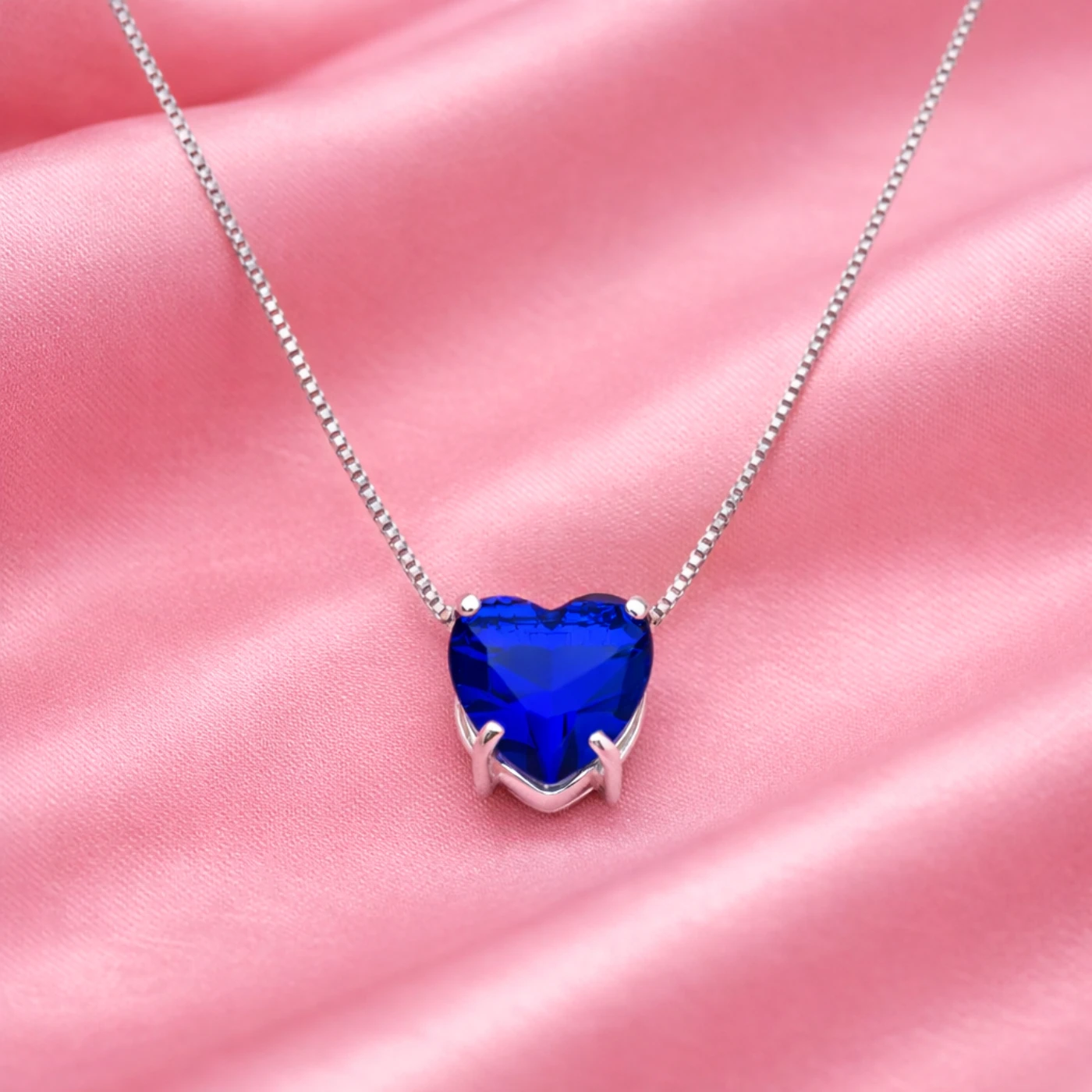 COLAR PONTO DE LUZ CORAÇÃO AZUL SAFIRA