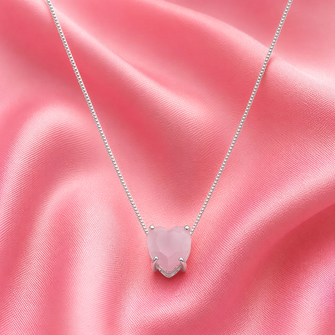 COLAR PONTO DE LUZ CORAÇÃO ROSA MILK