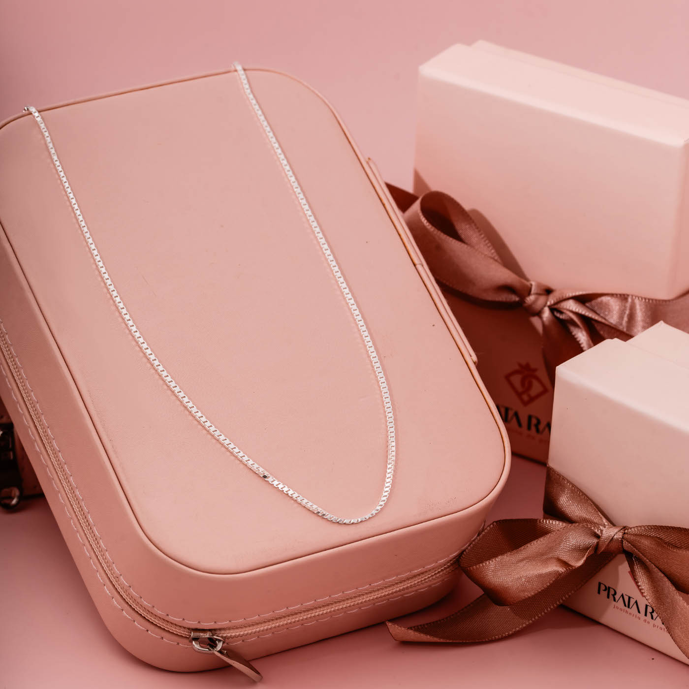 Corrente Veneziana V25 de prata, um modelo de espessura mediana que une leveza e destaque na medida certa. Seu design clássico e elegante valoriza o brilho da prata, tornando a peça ideal para ser usada sozinha ou com pingentes. Uma joia atemporal, perfeita para compor diferentes produções com sofisticação e versatilidade.