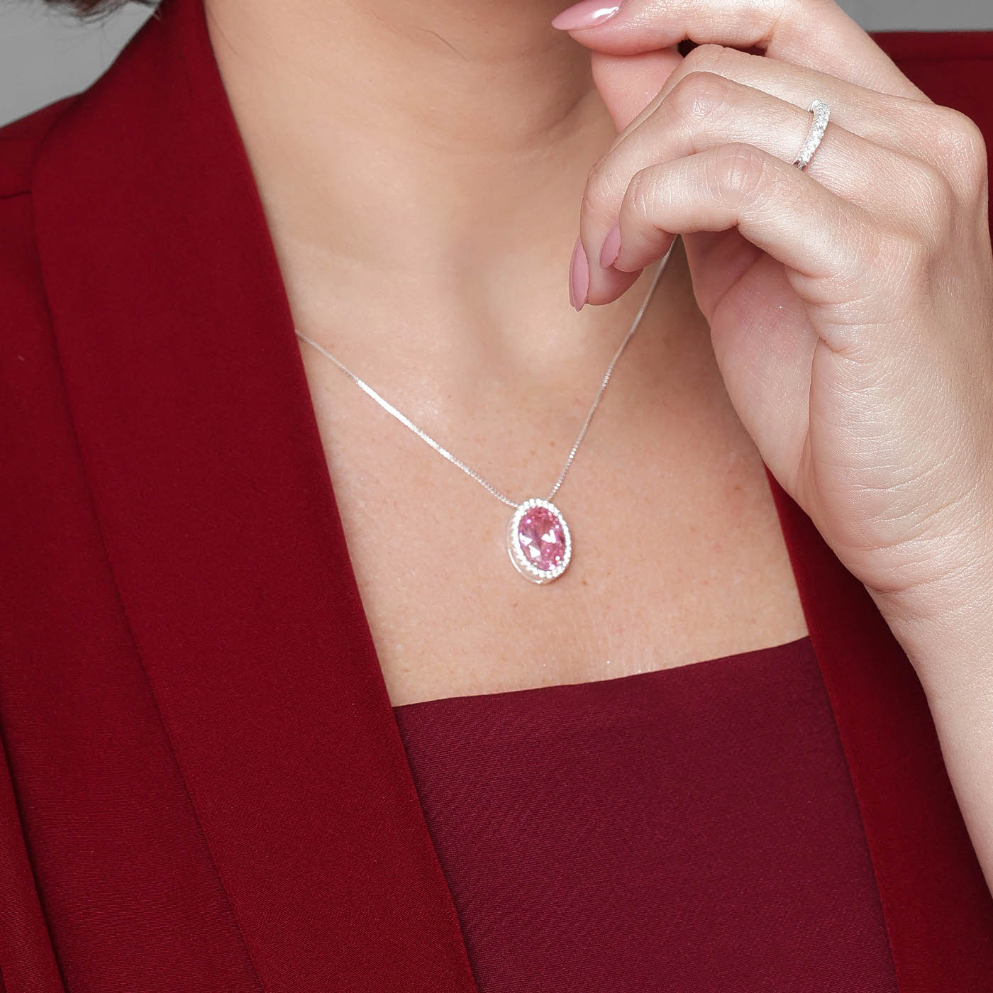 Gargantilha Oval 10×14 Rosa em Prata, uma joia que destaca feminilidade e presença em um design elegante. O formato oval valoriza o colo com suavidade, enquanto o tom rosa traz delicadeza e um toque romântico ao visual.